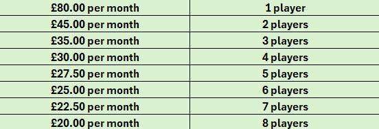 Players must be members of the club to attend our ongoing coaching programme - All players get access to 6 weeks of coaching as a non-member but must purchase membership after this